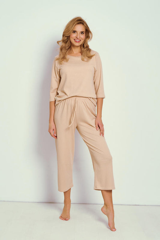 PIŻAMA DAMSKA Z KRÓTKIM RĘKAWEM Z KIESOZNKĄ I SPODNIAMI 3/4 PDD2800-003 S/S 2025