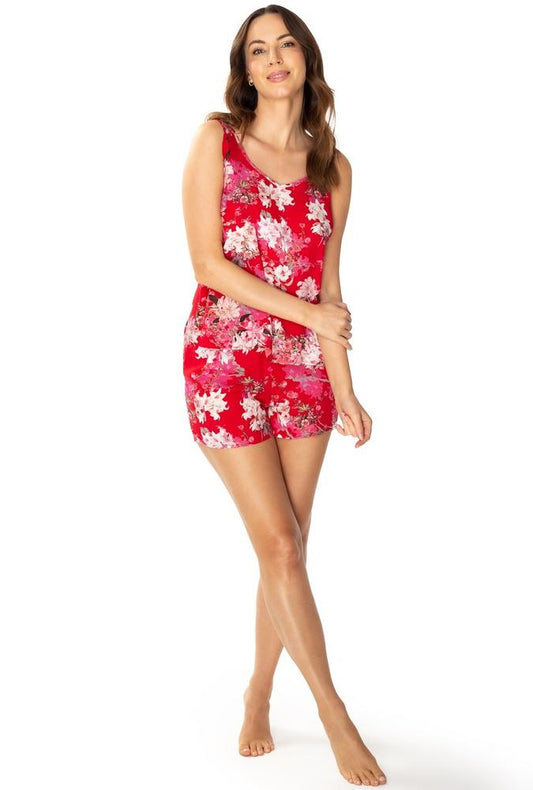PIŻAMA DAMSKA Z KRÓTKIM RĘKAWEM WISKOZOWA W KWIATY PDD5500-006 AW/25