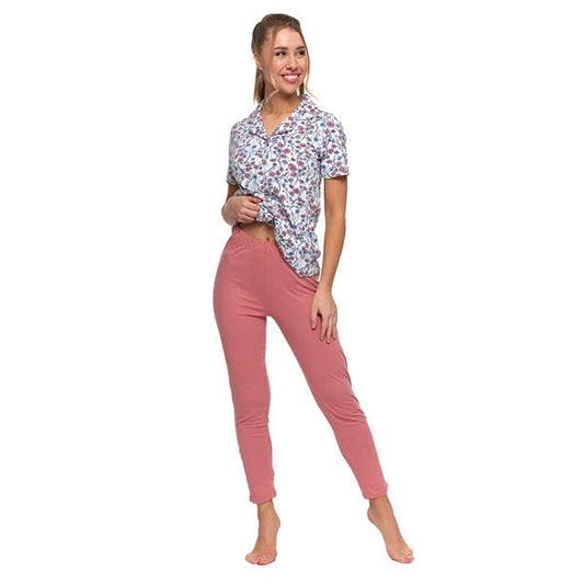 PIŻAMA DAMSKA ROZPINANA Z KRÓTKIM RĘKAWEM PDD4900-025