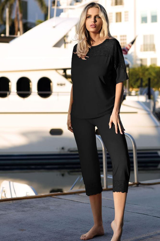 PIŻAMA VISA KRÓTKI RĘKAW + 3/4 SPODNIE SZEROKIE 889