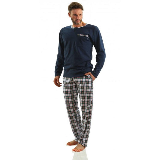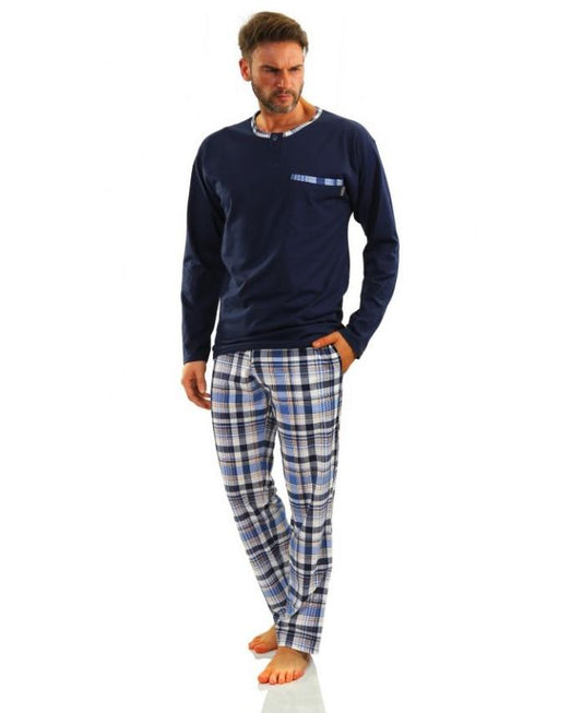 PIŻAMA MĘSKA DŁUGA 06 KRATKA BAWEŁNIANA WZ06 P1154