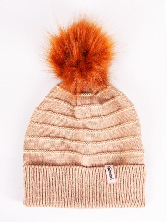 CZAPKA DAMSKA ZIMOWA BEANIE W PRĄŻEK DCZ1700-005