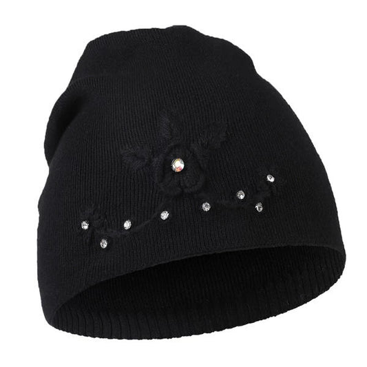 CZAPKA DAMSKA Z HAFTEM KWIATOWYM I KRYSZTAŁKAMI DCZ2900-007
