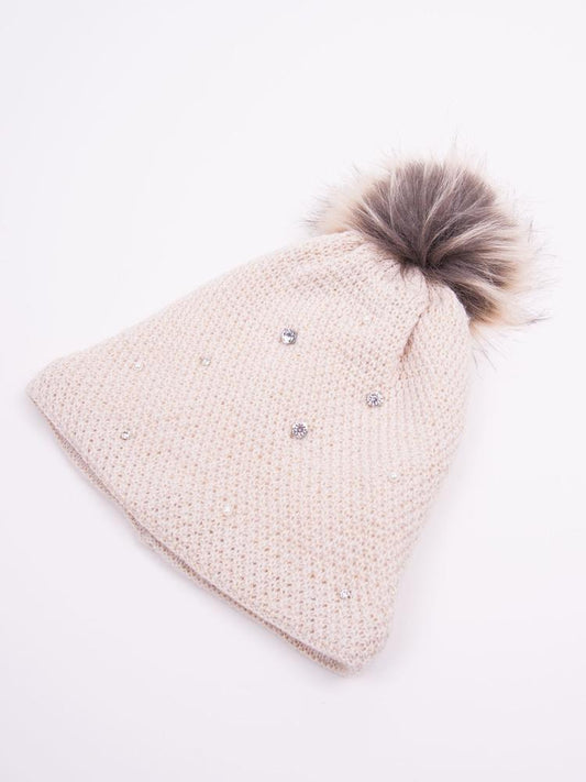 CZAPKA DAMSKA Z WEŁNĄ I KRYSZTAŁKAMI ELEGANCKA DCZ2900-008