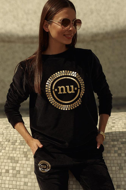 WELUROWY DAMSKI ZESTAW DRESOWY ZE ZŁOTĄ NAPRASOWANKĄ CZARNY NU418