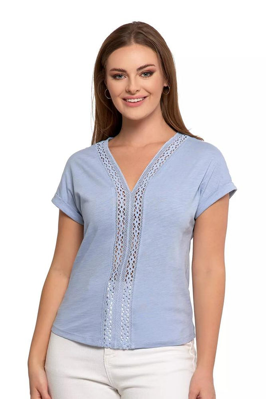 BLUZKA DAMSKA BAWEŁNIANA Z AŻUROWĄ WSTAWKĄ I DEKOLTEM V BD1800-014