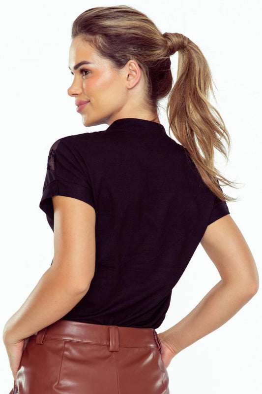 BLUZKA DAMSKA Z WISKOZY Z AŻUROWYM WYKOŃCZENIEM BD3300-001