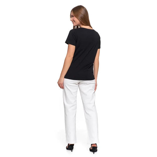 BLUZKA DAMSKA Z KRÓTKIM RĘKAWEM I ZDOBIENIEM BD1900-034
