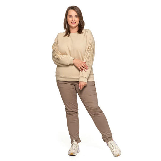 WELUROWA BLUZA DAMSKA Z HAFTEM BEZ KAPTURA OBD2500-004