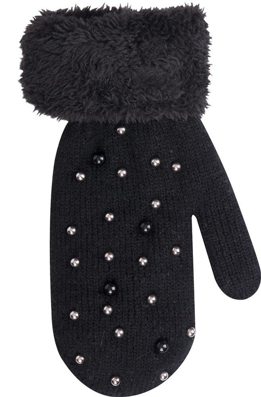 WyprzedaneRĘKAWICZKI DAMSKIE Z FUTREM I PERŁAMI R-088A