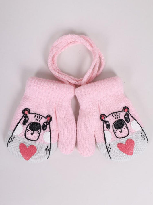 RĘKAWICZKI AKRYLOWE DZIEWCZĘCE 1-PALCOWE ZE SZNURKIEM RED-0003G