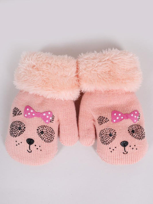 RĘKAWICZKI DZIEWCZĘCE 1-PALCOWE ABS OCIEPLANE FUTREM ZE SZNURKIEM RED-0011G
