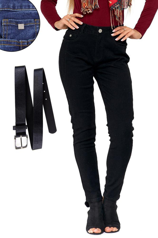 SPODNIE DAMSKIE JEANSY Z PASKIEM OSD6000-001