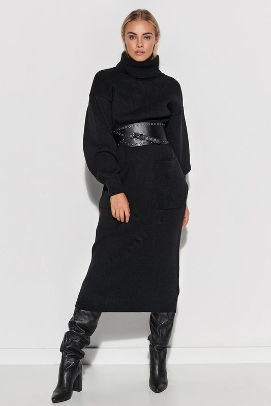 DZIANINOWA SUKIENKA Z GOLFEM I KIESZENIAMI BRĄZOWA S105