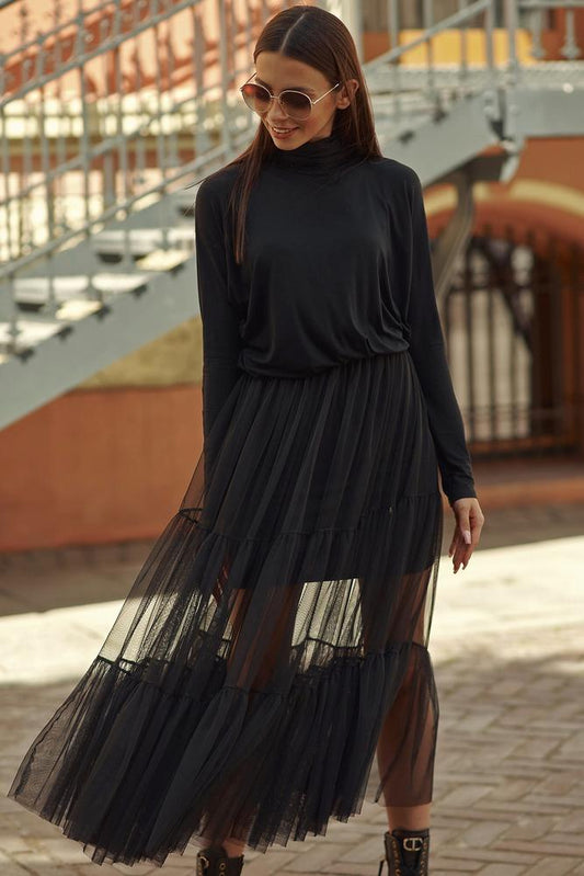 WISKOZOWA SUKIENKA Z GOLFEM I TIULOWYM DOŁEM CZARNA NU413