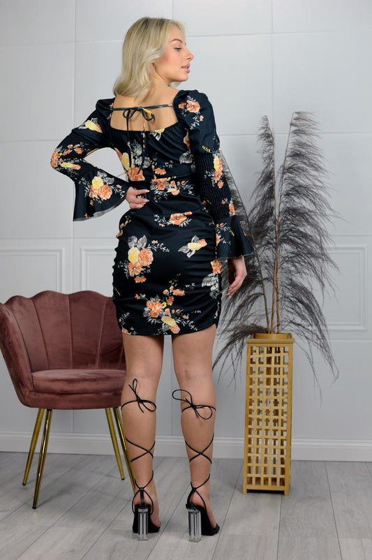 SUKIENKA OVERSIZE Z FALBANĄ I APLIKACJĄ CZARNA NU380