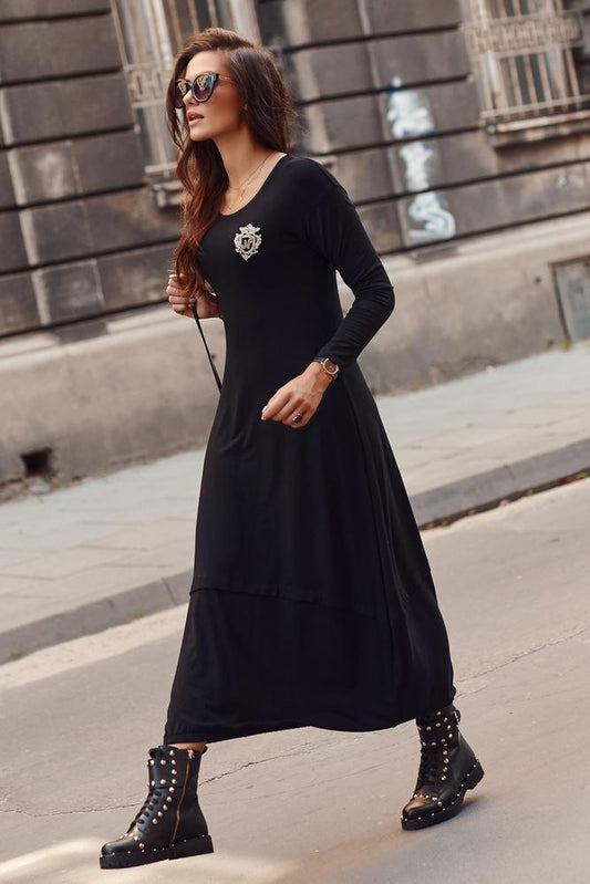 WISKOZOWA SUKIENKA MAXI Z APLIKACJĄ NUMINOU CZARNA NU319