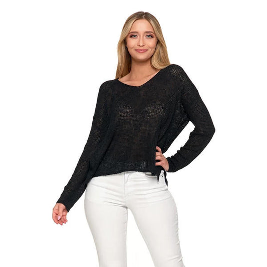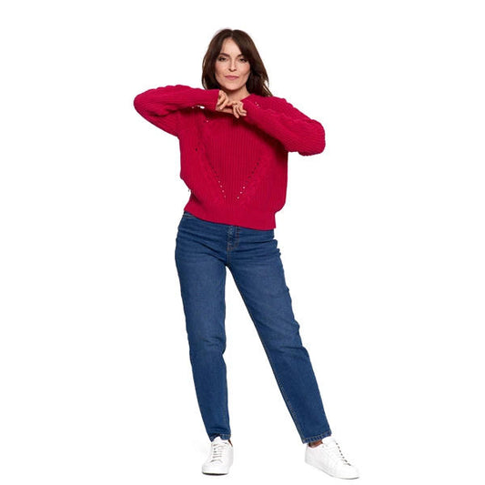 SWETER DAMSKI AŻUROWY Z DEKOLTEM ŁÓDKOWYM BDS2500-004