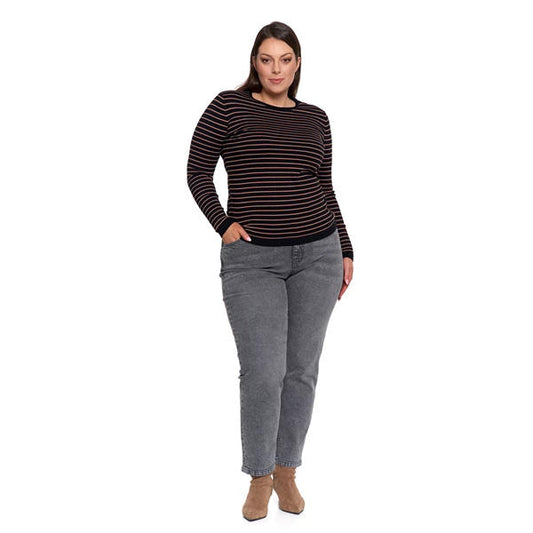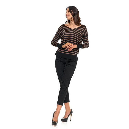 SWETER DAMSKI Z WISKOZY W PASKI I OKRĄGŁYM DEKOLTEM BDS3400-009