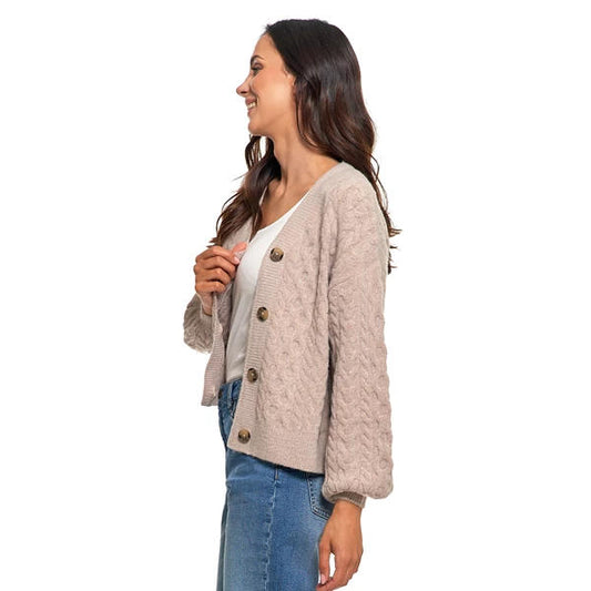 KARDIGAN DAMSKI SWETER Z PLECIONYM WZOREM I GUZIKAMI BDS5000-003