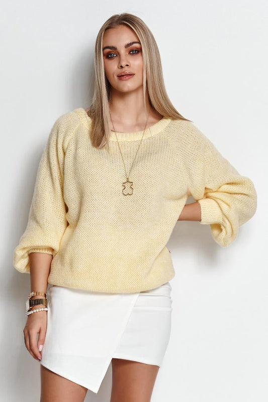 SWETER DAMSKI Z DEKOLTEM W SEREK ECRU I JASNY BEŻ S129