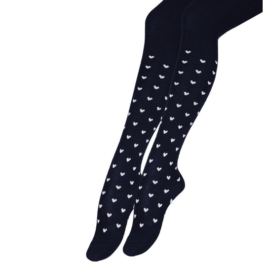 RAJSTOPY WZORZYSTE BAWEŁNIANE, WZÓR SERDUSZKA - 6-11 LAT