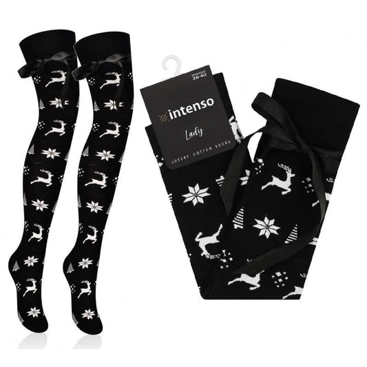 ZAKOLANÓWKI DAMSKIE BAWEŁNIANE INTENSO WE WZORY Z KOKARDKĄ ART. 0440