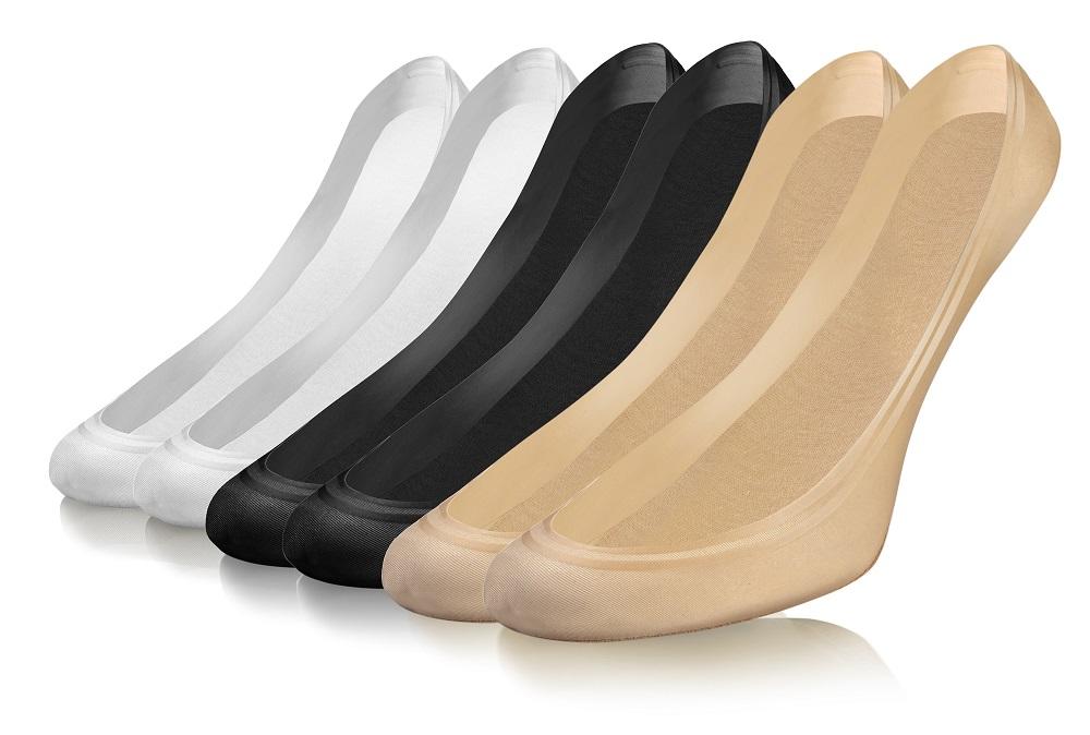 Balerinki laserowe. Pod stopą są wykonane z bawełny. Jest również znak logo firmy z silikonu. Dzięki temu balerinka nie ślizga się w bucie. Część wierzchnia wykonana z poliamidu z dodatkiem elastanu. Całą stopę oplatają dwa paski silikonu dzięki czemu nie zsuwa się ze stopy. Skład : 38% bawełna, 35% poliamid, 8% elastan, 19 % silikon.
