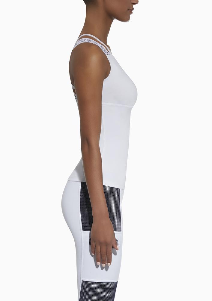 Bluzka sportowa. Materiał PLUSH-ZERO (PZ) ARCHROMA jest w pełni kryjący, elastyczny, modelujący sylwetkę. Materiał ten ma właściwości funkcyjne i dlatego jest określany jako oddychający, ponieważ dzięki zastosowaniu specjalnej chemicznej modyfikacji struktury włókien firmy ARCHROMA ma znacznie zwiększone właściwości przepustowości powietrza i odprowadzania wilgoci z ciała. Materiał PLUSH-ZERO ARCHROMA jest wykonany z przędz renomowanych producentów z międzynarodowym certyfikatem Oeko-Tex.
