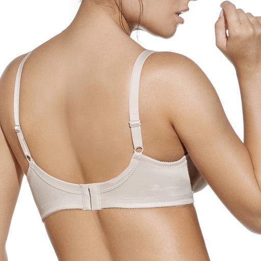 Biustonosz miękki bez fiszbin. Wykonany z tkaniny simplex dla większego wsparcia, ramiączka ozdobione koronką