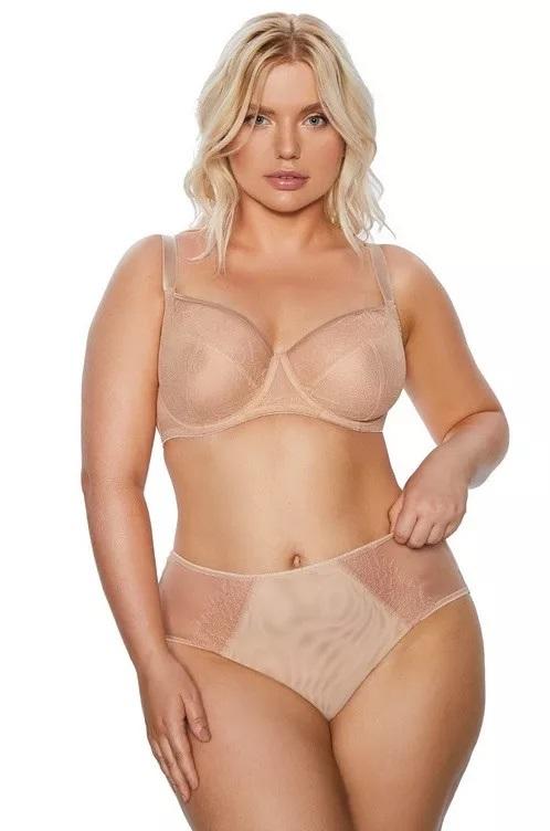 Miękki biustonosz z fiszbinami z efektownej koronki, podszyty tiulową siateczką. Miseczki z pionowym cięciem, idealnie unoszą i nadają ładny kształt piersiom. Boczki wzmocnione fiszbinami. Ramiączka nieodpinane