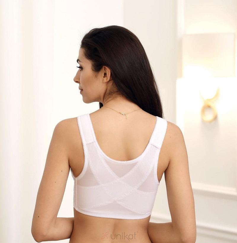 Miękki biały biustonosz zapinany z przodu Unikat WALENTYNA . Krój sportowy lekko korygujący postawę. Wygodny biustonosz na co dzień, dla tych Pań, które dla wygody i komfortu użytkowania potrzebują zapięcia z przodu. Doskonale sprawdzi się też przy uprawianiu sportów, zwłaszcza wtedy kiedy potrzeba stabilizacji np dużego biustu.