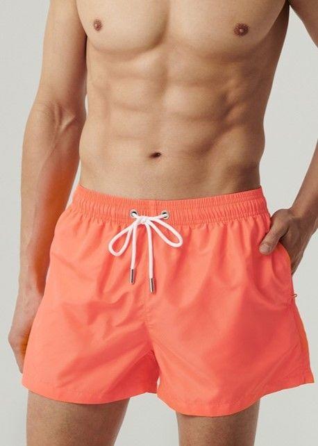 Szorty kąpielowe z krótkimi nogawkami z szybkoschnącego poliestru, który nie odkształca się i nie gniecie. Szorty mają uniwersalnej wysokości stan oraz boczne kieszenie, wiązane na sznurek.