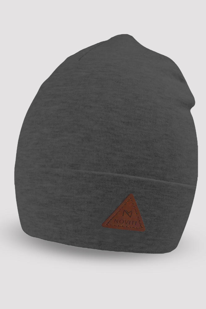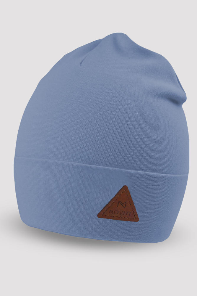 Czapka chłopięca wywinięta z podwójnej bawełny z małą naszywką.