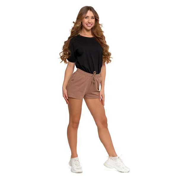 Idealne na lato i aktywny dzień! Damskie szorty dresowe wykonane z bawełny z domieszką elastanu zapewniają lekkość, elastyczność i komfort noszenia. Elastyczna talia ze sznurkiem umożliwia idealne dopasowanie do sylwetki, a boczne kieszenie dodają funkcjonalności. Szorty mają uniwersalny, minimalistyczny krój, który łatwo dopasować do różnych stylizacji, od sportowych po casualowe. Doskonały wybór na spacery, wakacyjne wyjazdy czy relaks w domowym zaciszu.