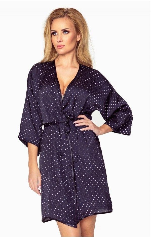 Komfortowy a zarazem elegancki szlafrok damski satynowy, wiązany w pasie.