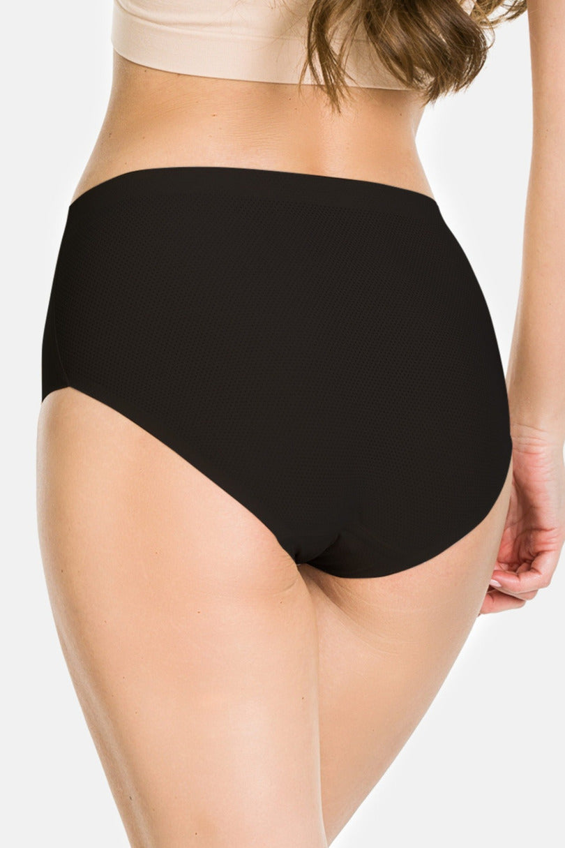 Klasyczne figi damskie z delikatnej, perforowanej mikrofibry, cienkie i delikatne wykończenie, dzięki któremu figi nie będą się odznaczać pod ubraniem