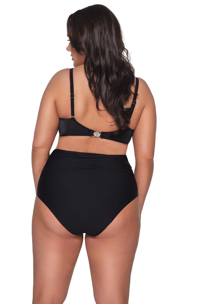 Figi kąpielowe wykonane z wysoką linią talii, marszczone na biodrach,wykonane z gładkiej mikrofibry, dwuwarstwowe.
