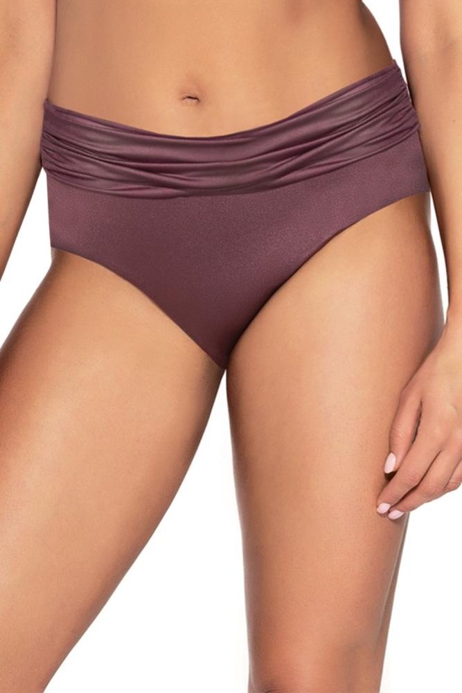 Figi kąpielowe z wyższym stanem, góra marszczona.