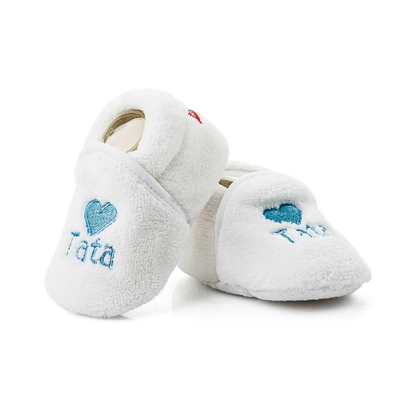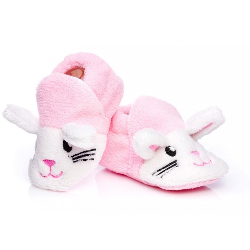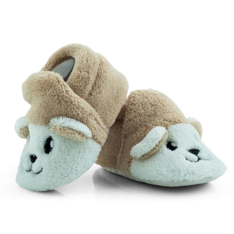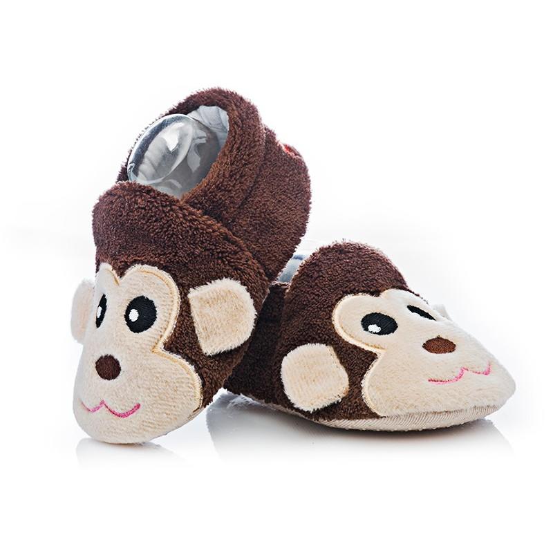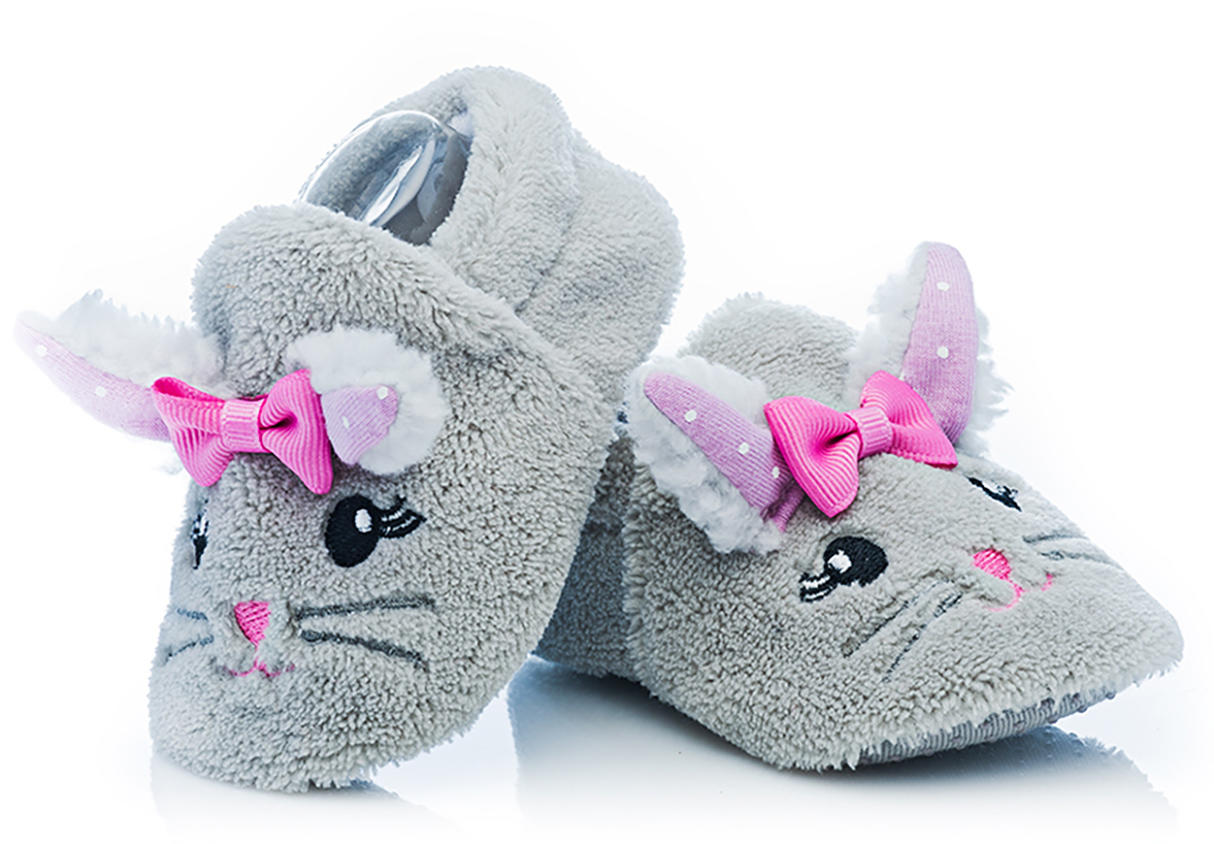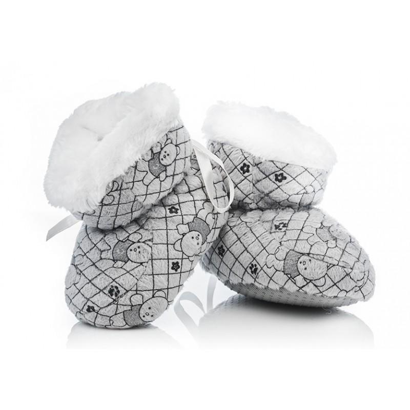 Futrzaki - Buciki. Ciepłe, domowe buciki niemowlęce wykonane w całości z dzianiny przypominającej futerko. Podeszwa nakrapiana systemem antypoślizgowym.