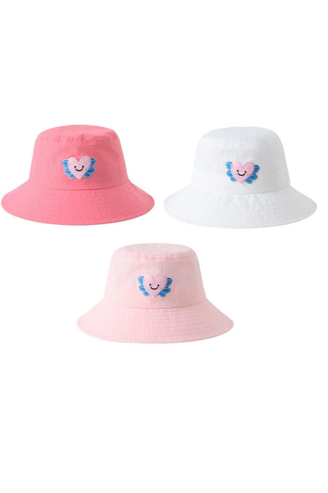 Przewiewny kapelusz dziewczęcy z cienkiego, dziurkowanego materiału. Stylowa aplikacja i modne kolory dodają uroku. Lekki i wygodny – idealny na lato!