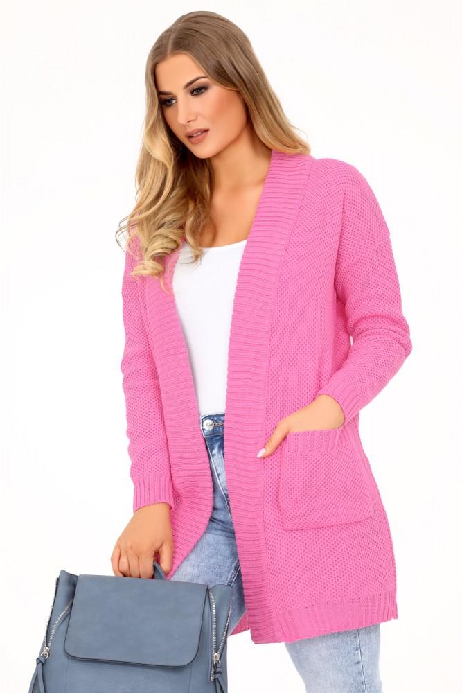 Sweter - kardigan Kandilla ma klasyczny krój. Może z powodzeniem zastąpić płaszczyk. Delikatny ścieg dzianiny plaster miodu. Z przodu posiada przydatne kieszenie, wykończony z przodu plisą. Wykonany z wysokiej jakości dzianiny akrylowej.