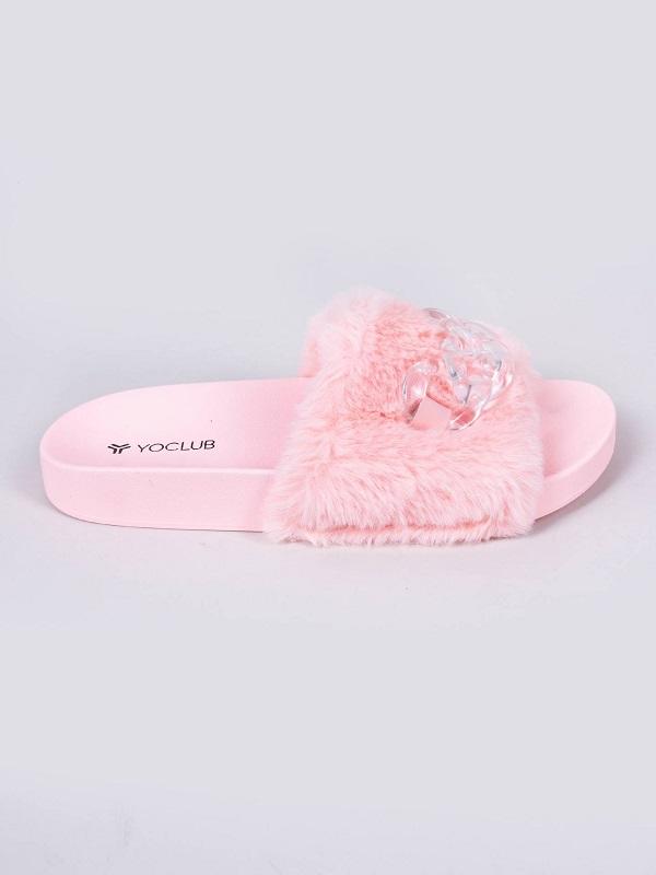 Klapki damskie futro z klamrą OKL-0068K.