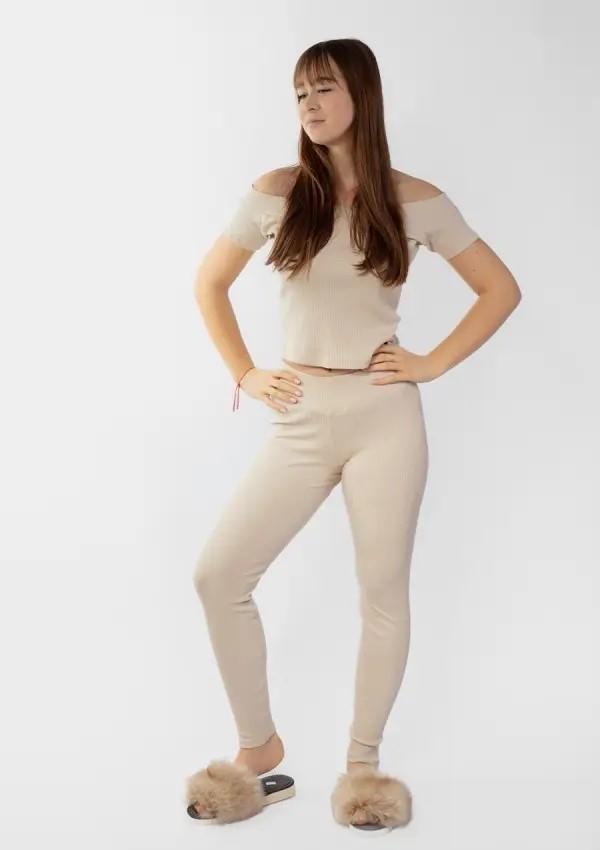 Odkryj niepowtarzalny urok i komfort dzięki naszemu zestawowi w prążki Bayo - połączenie modnych legginsów w prążki i bluzki o kroju hiszpanki. Komplet z pewnością przypadnie do gustu każdej kobiecie ceniącej sobie zarówno wygodę, jak i modę.