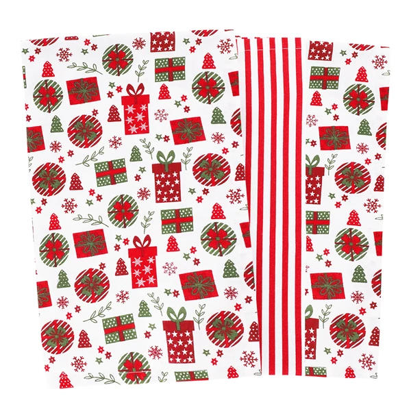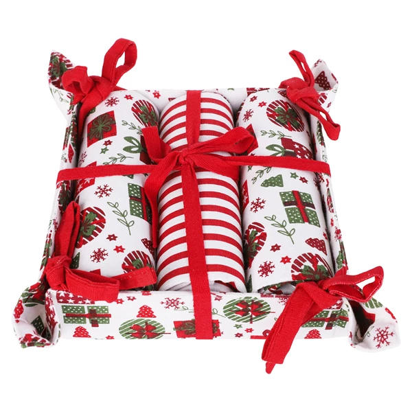 Zestaw świątecznych ręczników kuchennych w estetycznym koszyczku ľ praktyczny i dekoracyjny element Twojej kuchni Przygotuj swoją kuchnię na nadchodzące święta dzięki zestawowi świątecznych ręczników kuchennych, które zachwycają zarówno funkcjonalnością, jak i wyglądem. Komplet składa się z dwóch ręczników o wymiarach 40 cm x 70 cm, wykonanych z najwyższej jakości bawełny (100%). Materiał ten charakteryzuje się doskonałą chłonnością, co sprawia, że ręczniki świetnie sprawdzą się w codziennym użytkowaniu do osuszania naczyń, wycierania rąk oraz przy pracach kuchennych.
