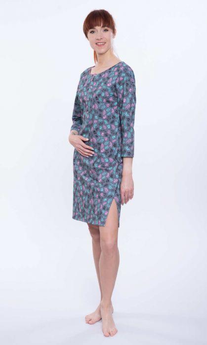 Z rozpinaną do pasa bluzą,wykonana z najwyższej jakości czystej bawełny. Miękka, miła dla ciała. Bluza w kolorze grafitu z kolorowym nadrukiem w gałązki. Zapinana na cztery różowe napy, dekolt półokrągły i rozcięcie ładnie wykończone wąską, różową, harmonizującą z nadrukiem wypustką. Rękaw i dół koszuli zakończone podwinięciem. Po bokach niewielkie rozporki. Wygodna i praktyczna. Z pewnością posłuży karmiącym mamom.