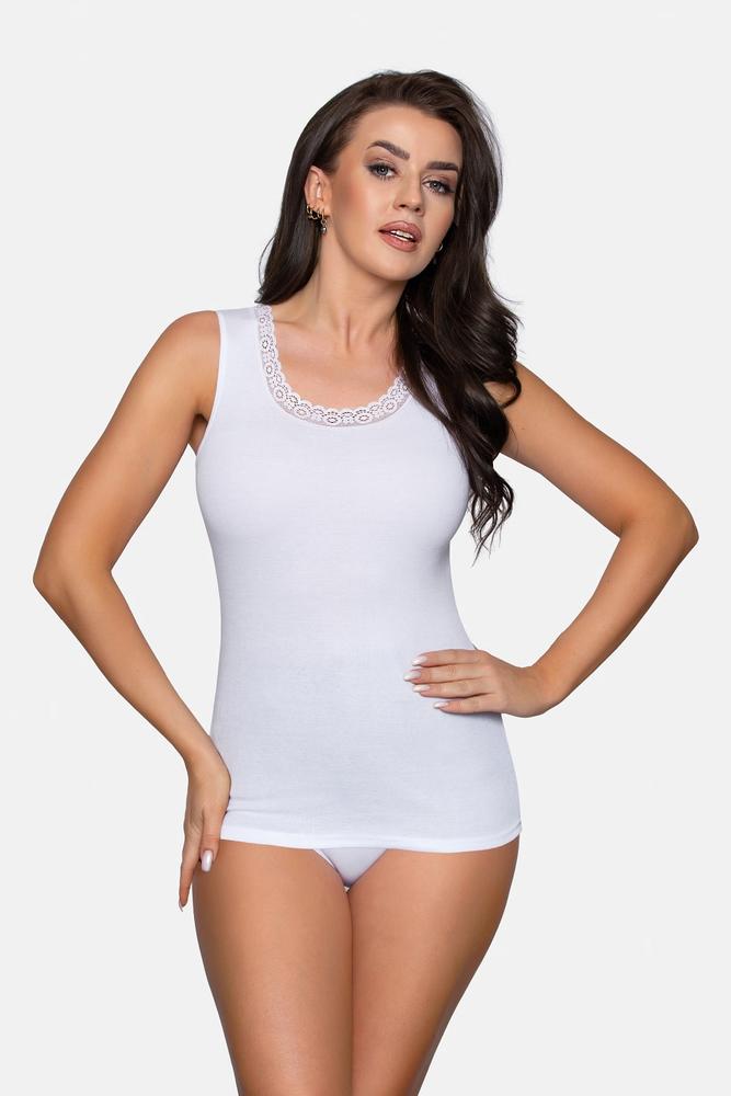Podkoszulka damska Michalina od Babell. Wygodna koszulka damska uszyta z najlepszej jakości bawełny. Szerokie ramiączka i pełne plecy zapewniają komfort i ciepło. Dekolt jest ozdobiony delikatną elastyczną koronką.