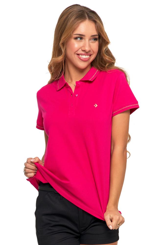 Koszulka cechuje się prostym krojem, który gwarantuje swobodę ruchów oraz ponadczasową elegancję. Wyjątkowość tej koszulki podkreśla złote wykończenie na kołnierzyku oraz subtelny, ale wyrazisty złoty haft, dodający blasku i wyrafinowania. Złote detale nadają jej charakteru premium i sprawiają, że jest ona idealnym wyborem dla kobiet, które chcą się wyróżnić i dodać odrobiny luksusu do swojego codziennego stroju.