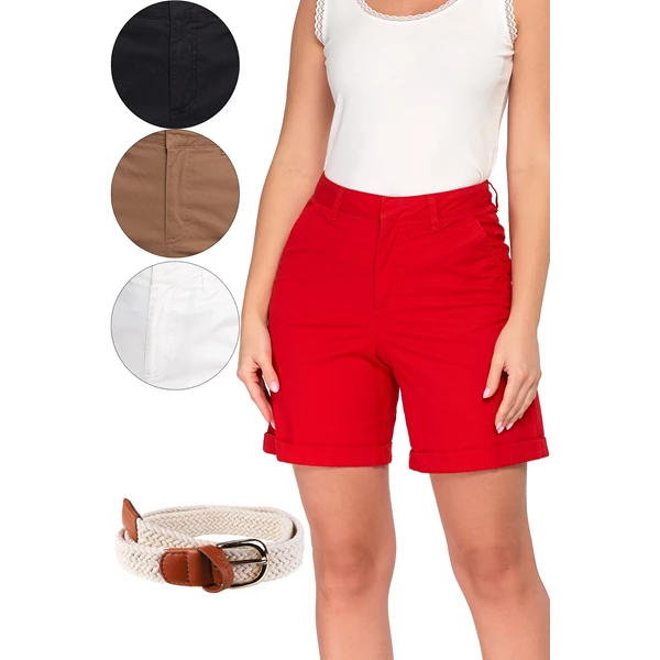 Te szorty damskie to klasyczny wybór na ciepłe dni. Wykonane z wysokiej jakości materiału, oferują komfort noszenia przez cały dzień. Model charakteryzuje się prostym, jednolitym kolorem oraz eleganckim paskiem, który podkreśla talię i dodaje całości stylowego wykończenia. Spodenki posiadają praktyczne kieszenie, które dodają funkcjonalności i wygody. Idealne na codzienne stylizacje w połączeniu z t-shirtem czy bluzą. Wybierz te szorty, by cieszyć się swobodą i modnym wyglądem na wiosnę i lato.