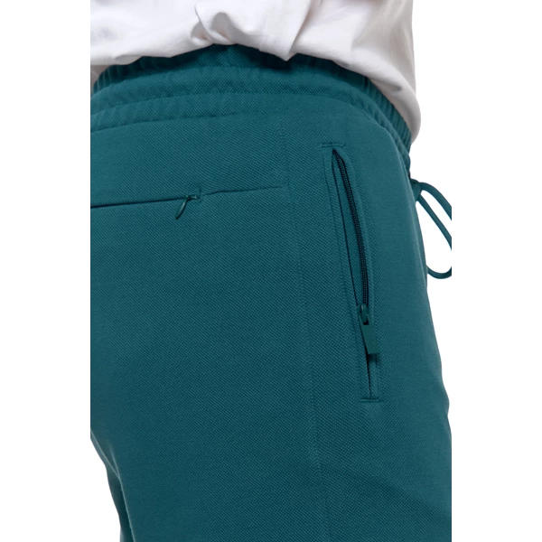 Szorty, które łączą miejski luz z praktycznym wykończeniem. Wykonane z grubszego materiału o wyczuwalnej strukturze, świetnie sprawdzają się na co dzień, są wytrzymałe, komfortowe i dobrze trzymają formę. Elastyczny pas ze sznurkiem umożliwia indywidualne dopasowanie, a trzy funkcjonalne kieszenie, dwie boczne i jedna tylna, zapinane na zamek, zapewniają bezpieczne przechowywanie drobiazgów. Prosty, minimalistyczny fason sprawia, że szorty łatwo zestawić zarówno z T-shirtem, jak i koszulką polo.